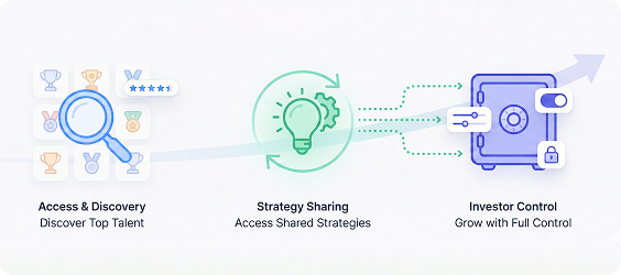 You’ll earn proportional returns based on the master trader’s success, giving you a chance to learn and grow while your investments work for you