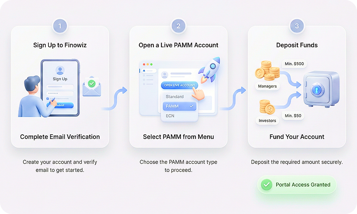 Finowiz's PAMM software enables secure, automated profit sharing between investors and traders, ideal for passive income and account management.